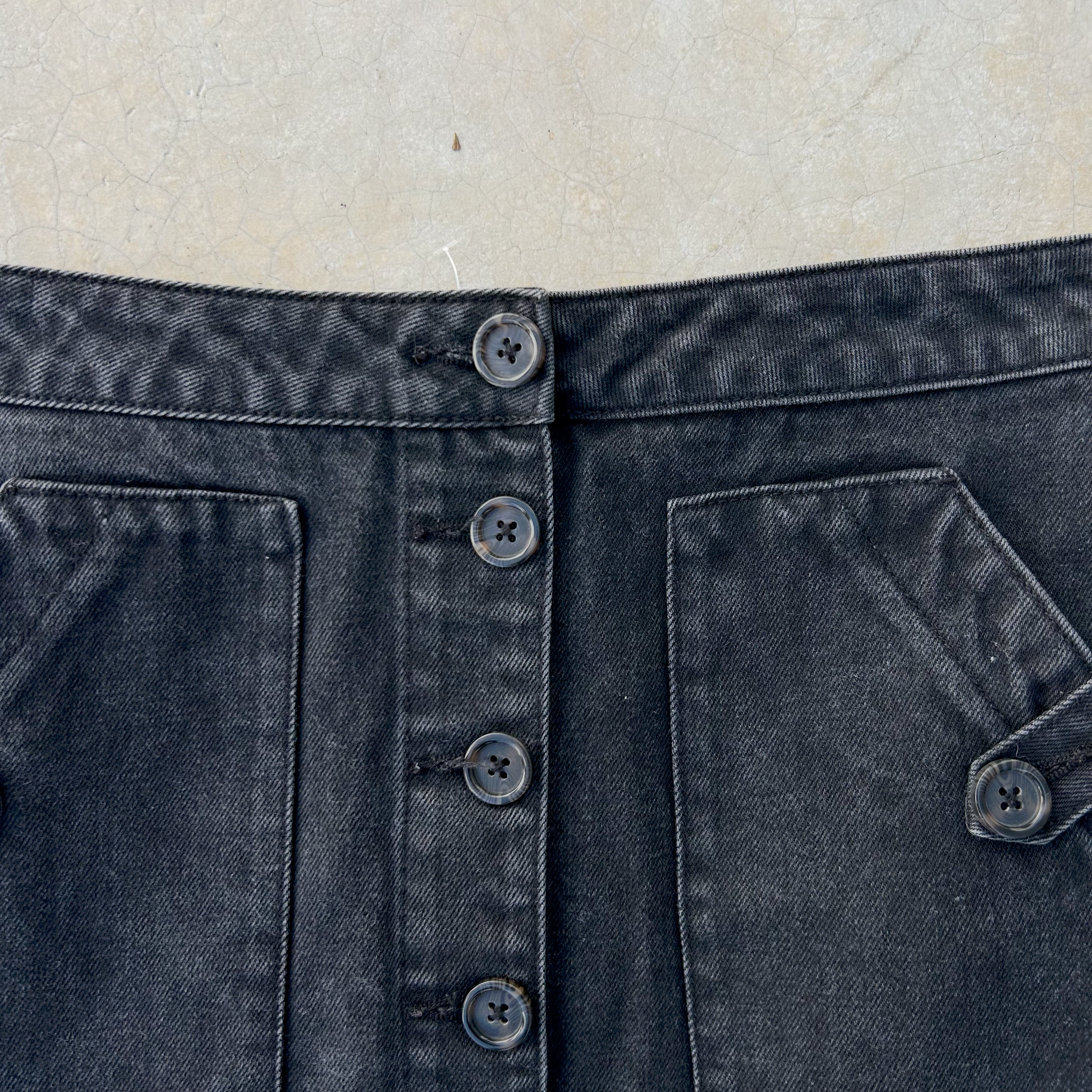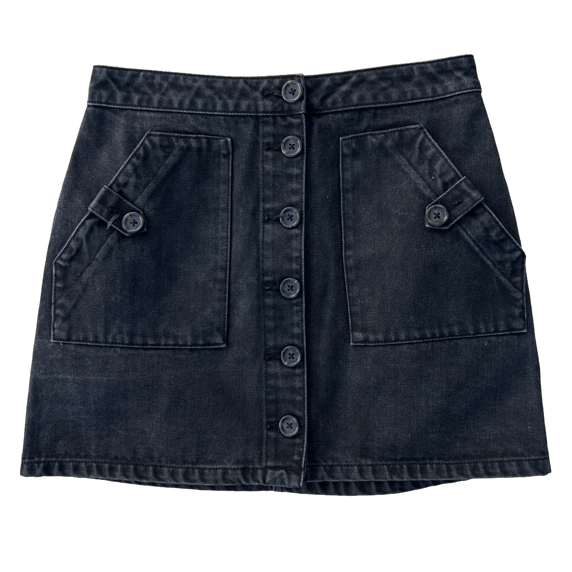 Coqueta mini falda mezcla de algodón poliéster rayon, con bolsillos al frente, método de acceso botones al frente.