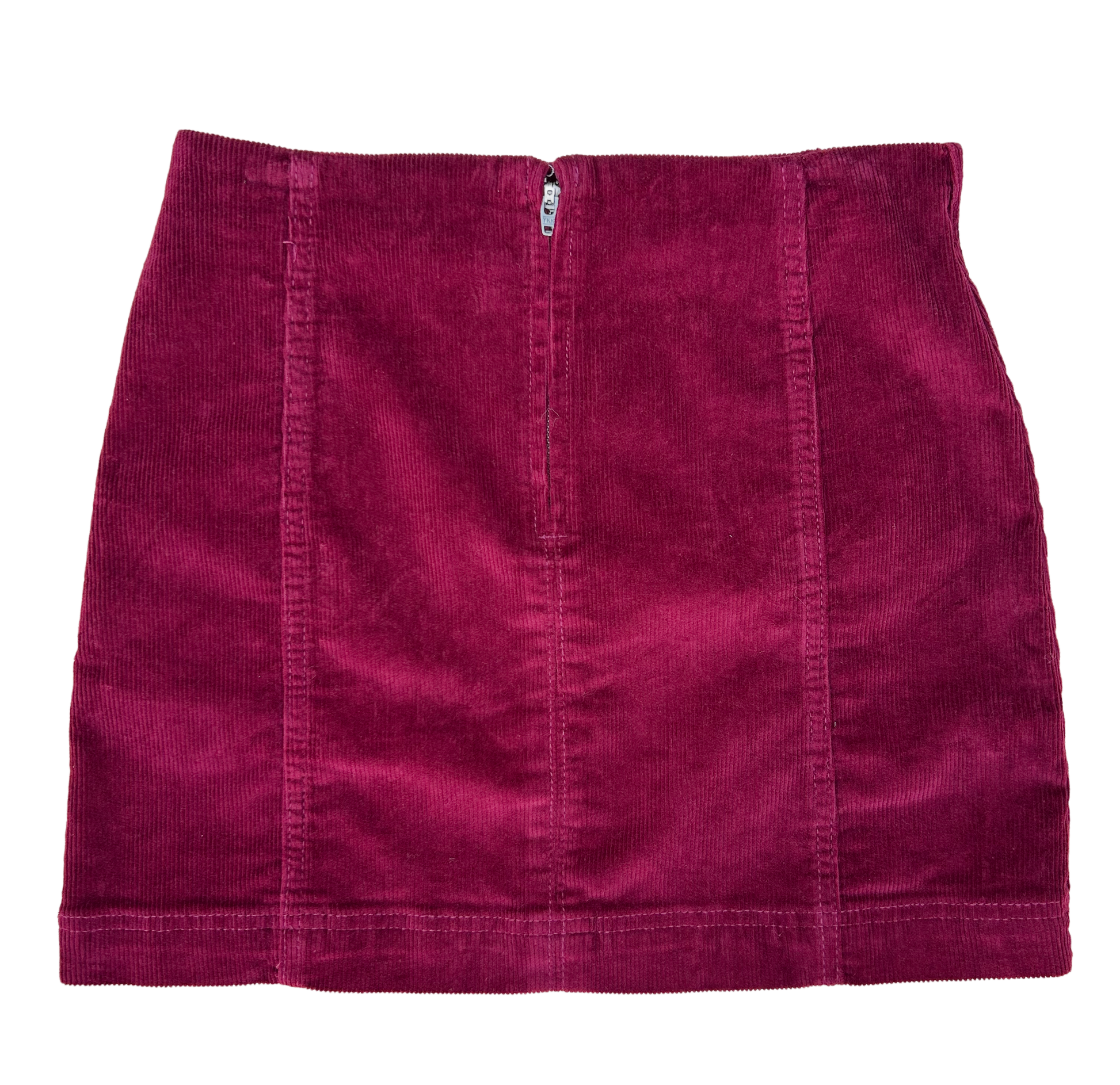 Coqueta mini falda de mezcla de algodón con spandex, con paneles frente y espalda, cierre metálico atrás, precioso color vino, el corduroy es muy suave.