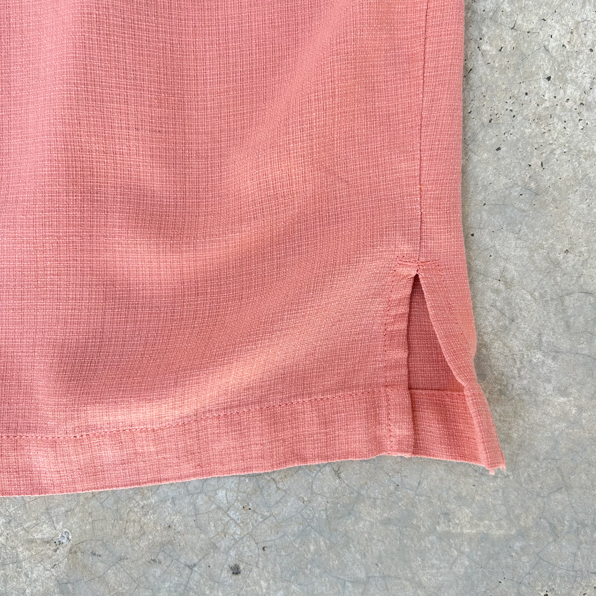 Original Fit - Hermosa camisa de seda, con textura tejida, vibrante color coral, bolsillo cuadrado al frente, botones de coco, mini aberturas a los costados.