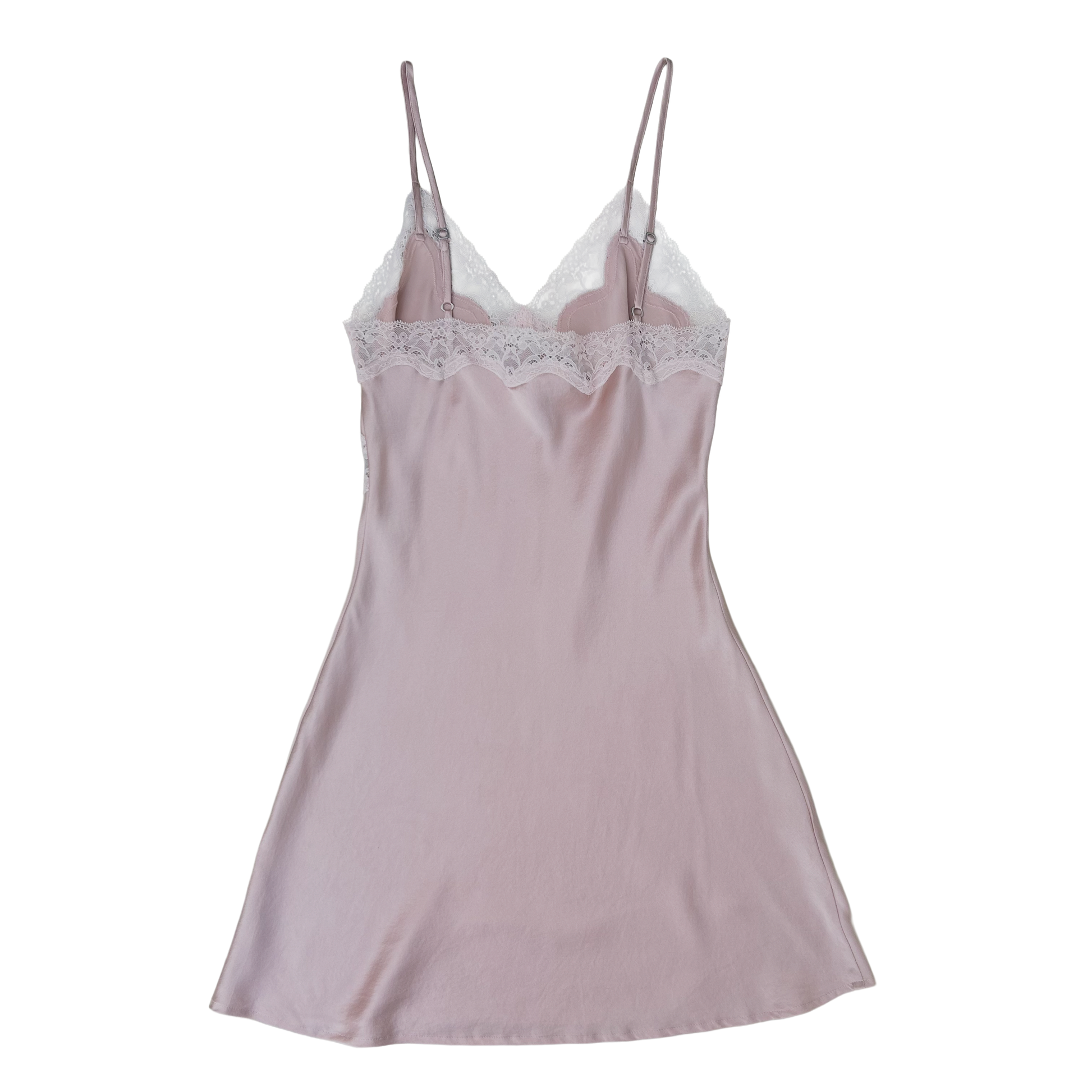 De la diseñadora de NY - Exclusivo vestido lencero de seda, liquida, extremamente suave, silueta ligeramente en A, corte imperio abrazando el busto, escote en V con aplicación de encaje importado de Italia, tirantes de espagueti ajustables, hermoso color rosa Crepe, nuevo sin etiqueta, una Joya!!